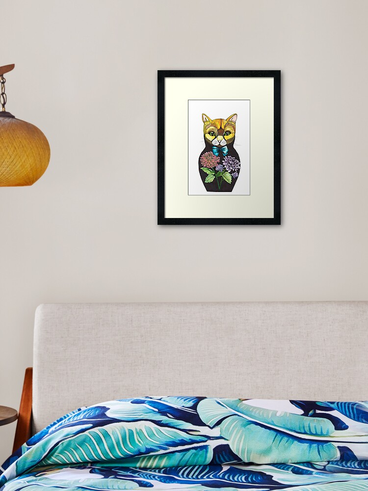 Dahlia Tattoo Style Russian Doll Cat Framed Art Print By