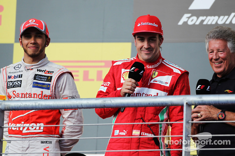 Podium Fernando Alonso Scuderia Ferrari F10 Lewis