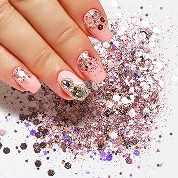 Box Nail Glitter Mix Hexagon 3d Flakes Dipping Powder Sequins For Nails Holographic Spangles Nail Art Decoration Diy Pink