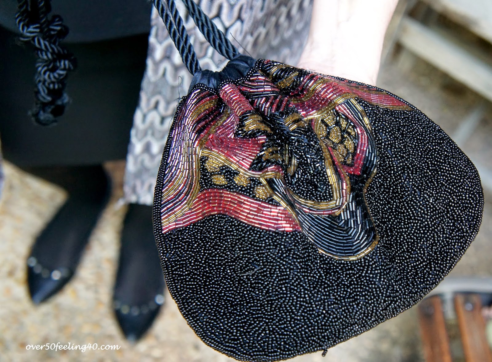 This vintage beaded bag was given to me by my mother-in-law years ago...and I really like it when I am going to be taking pictures because it hangs on my arm.