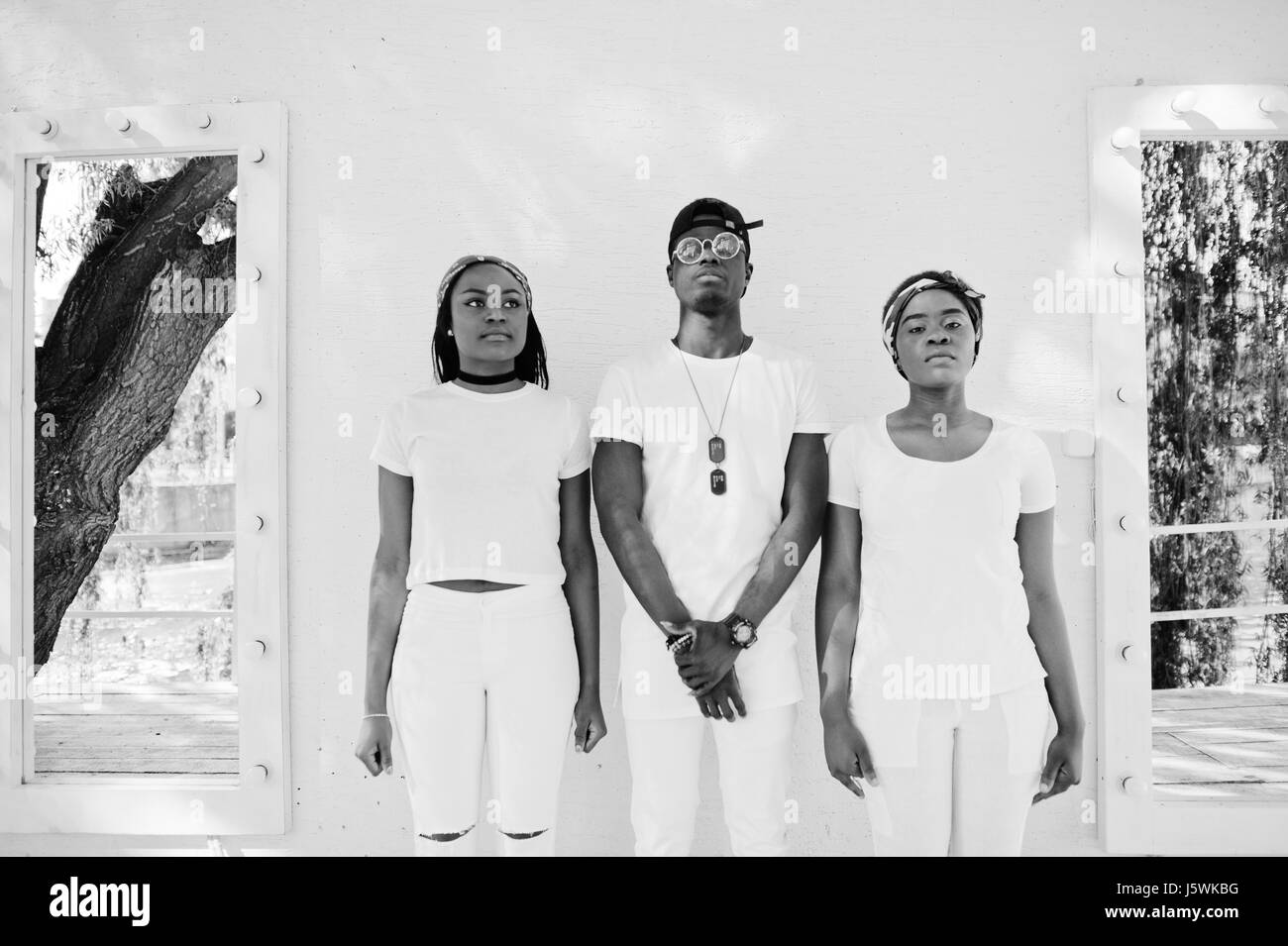 Three Stylish And Trendy African American Friends Wear On White