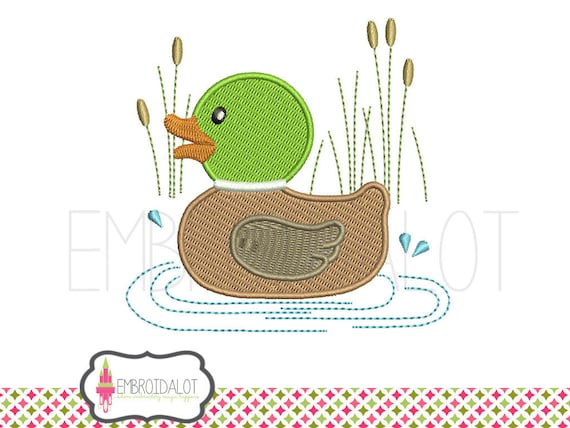 Duck Machine Embroidery Design Cute Mallard Duck In Pond Etsy