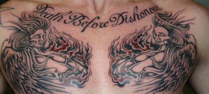 15 angel chest tattoo design ideas for men. Black ink death before dishonor mens script chest tattoo. Tattoo designs tattoo videos tattoo conventions tattoo games tattoo directories tattoo store tattoo forum tattoo wiki.